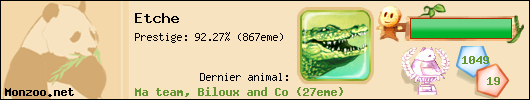 Le classement de votre team au tournoi du mois (22 è) rapporte 14 pts à votre team et un bonus de 320000 Zoo'z à votre Zoo.